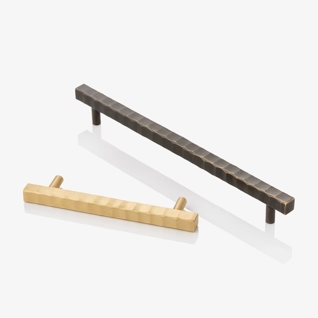Finest grade solid brass cabinet handle from the Rolled & Hammered collection, made and finished by hand. These handles are available in three sizes and in all our signature finishes.
