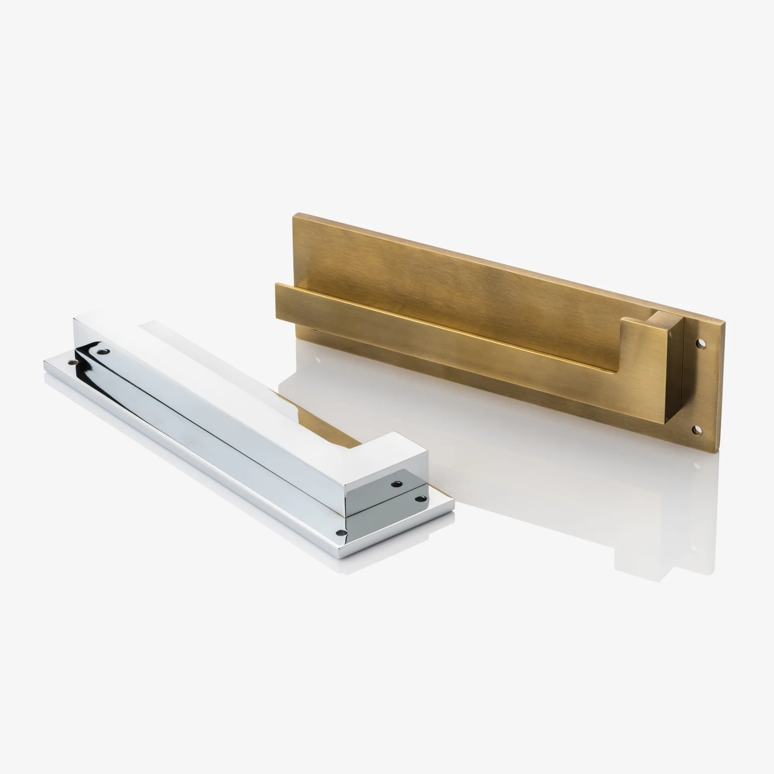 The solid brass Rohe'handles are made to suit cabinets with a thickness of 25mm, they are available in two lengths and can be hand-finished in any of our signature finishes.