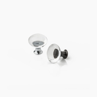 Crystal glass cabinet pulls mounted on a solid brass base, which is available in all our signature metal finishes.