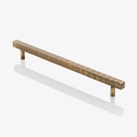 The brass is placed on hot coals until it softens, at which point the metal is distorted and shaped using a traditional fly press which creates its unique shape and texture. The pattern is evenly applied across the piece, however, as they are made by hand each handle will vary slight variations.