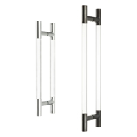 Fabricated for easy use, this door pull is smooth, streamlined and capped off with sturdy metal ends, allowing for an enduring addition to the home. We originally designed this handle with a bridle leather grip, which became an instant success due to its practical design and beauty. And so, in releasing the DP1006, we wish to offer this same merging of form and function, but with the luminance of Perspex.