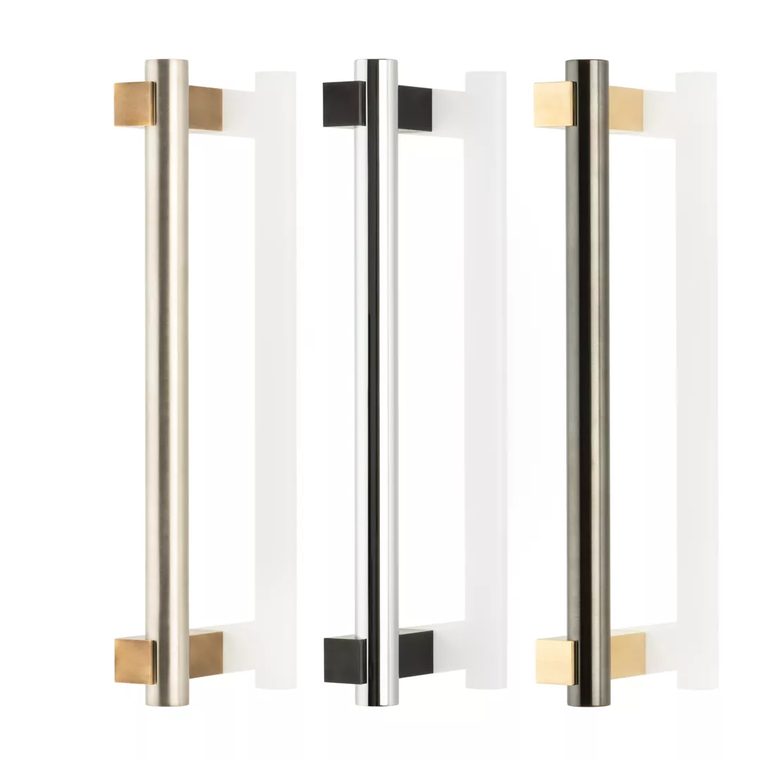 Your selected primary finish will be applied to the square stems of the door pull, with the secondary finish applied to the main grip.