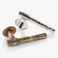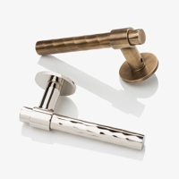 We were inspired by nature to create a design that was tactile and organic. The Rolled and Hammered collection is created using traditional blacksmith techniques: to achieve this beautiful texture, heated brass rods are manually rotated and hammered.