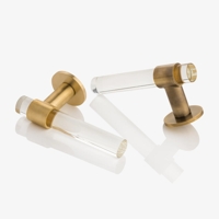 We took this vision and explored the possibilities to bring it to life: a challenging but rewarding task, as glass is a beautiful but delicate material to shape. The completed designs feature a transparent glass grip, which contrasts dramatically with the brass stem to provide a jewel-like finishing touch for the ultimate in luxury design schemes.