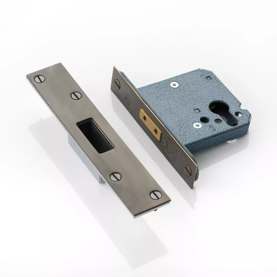 This is a BS3621 British standard high-security small case euro cylinder mortice deadlock. It is recessed into the door and operated by a euro cylinder. Euro cylinders are not supplied with the locks and need to be specified or procured separately.
