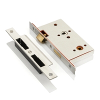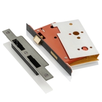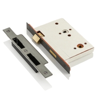 These high-performance vertical privacy latch locks are recessed into the door. The latchbolt is operated by a pair of lever handles and an 8mm spindle and the deadbolt is operated by a privacy snib from the inside and emergency release from the outside that are connected with a 5mm square spindle.